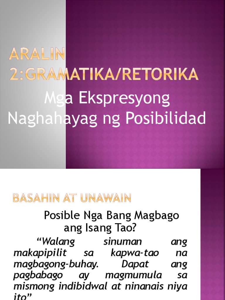 Aralin 1 2c Gramatika Mga Ekspresyong Naghahayag Ng Posibilidadpptx