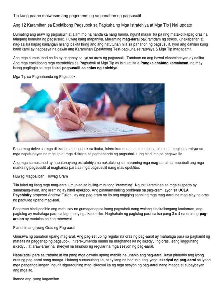 Paano Mag Aaral Para Sa Isang Pagsusulit Sa Araw Bago Tip 2021