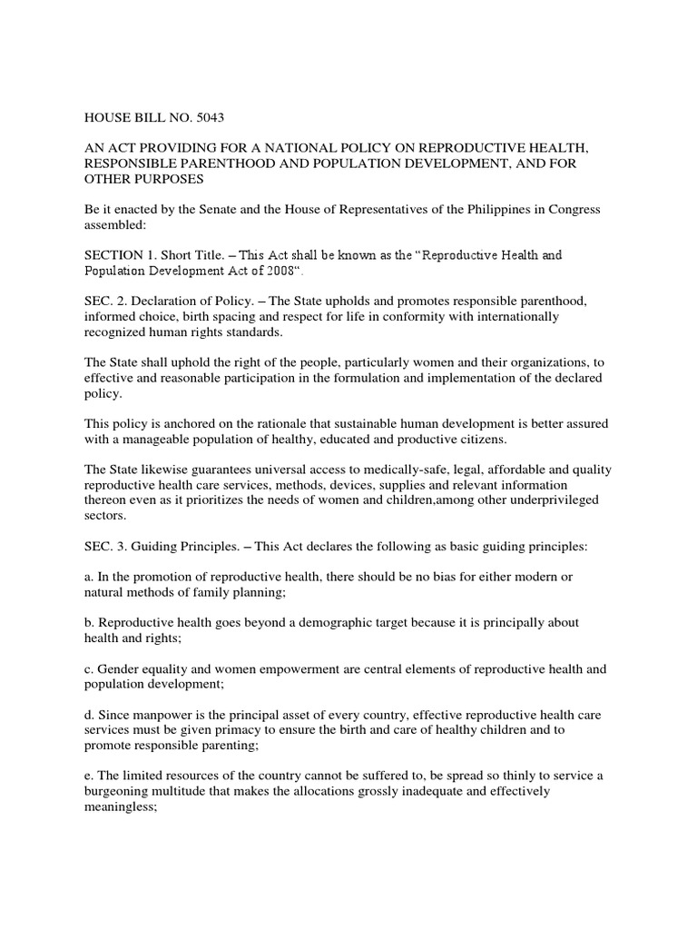 House Bill No Luteinizing Hormone Reproductive Health